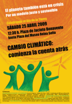 La Plataforma Ciudadana contra el Cambio Climático, entre otras organizaciones, convoca a una manifestación en Madrid el sábado 25 de abril de 2009, a las 12:30h, bajo el lema «Cambio Climático: comienza la cuenta atrás».
