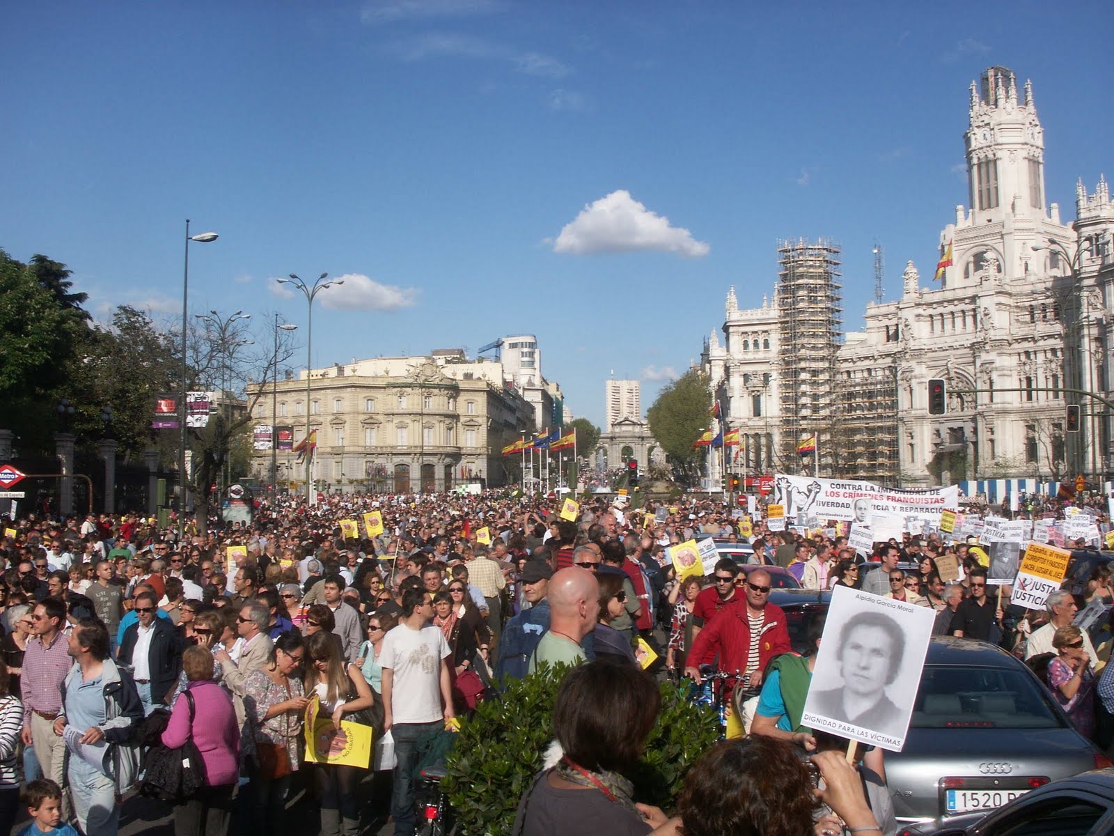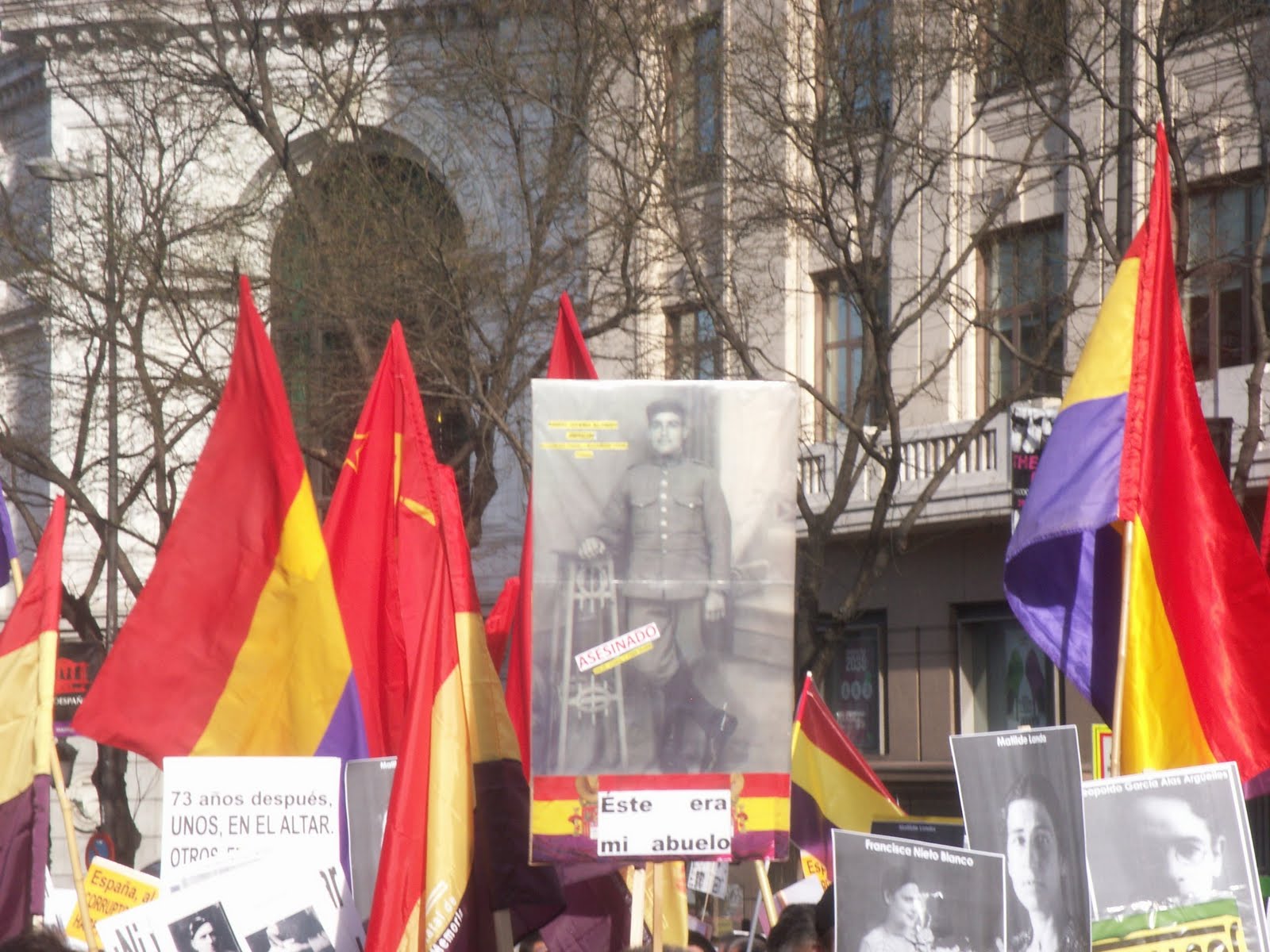 A pesar del burdo intento de Gallardón de entorpecer la marcha de la manifestación contra la impunidad de los crímenes fascistas, permitiendo la circulación en la calle Alcalá hasta minutos antes de su comienzo, esta convocatoria ha sido un éxito de participación y compromiso (veremos hasta donde llega). Las banderas republicanas han vuelto a ondear en las calles de Madrid mientras que miles de ciudadanos pedían verdad, justicia y reparación. ¿Son demandas disparatadas para una democracia?