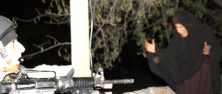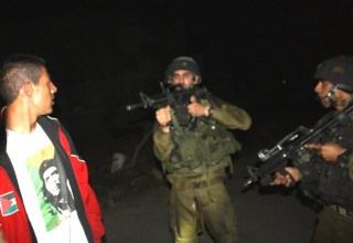 Estas dos fotografías acompañan una noticia aparecida en la web de Mondoweiss para ilustrar el asalto del ejército israelí a una casa del pueblo de Bi´lin, en busca de Ashraf al-Khatib. Las incursiones del ejército son habituales y forman parte de la cotidianidad del pueblo palestino a lo largo de la franja de Gaza. La existencia de estas acciones está suficientemente documentada y sirven para mantener atemorizada y en tensión continua a la población. Por eso no entiendo que tengan que acompañar esta noticia con dos fotografías editadas. Es un absurdo que la realidad de lo que ocurre, en la que no sólo se producen situaciones como las que aparecen en estas imágenes sino mucho más graves, como agresiones y asesinatos, se pretenda mostrar a partir de fotografías manipuladas de forma tan evidente.