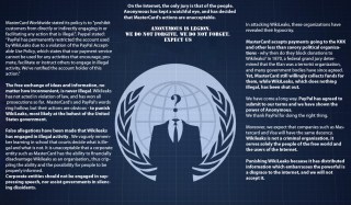 Manifiesto elaborado colectivamente por Anonymous ante acciones contra PayPal y Mastercard: