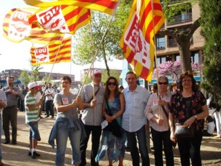 ¿Josep Anglada en un acto con UGT? ¿UGT en un acto con Josep Anglada? Anglada, presidente ultraderechista de Plataforma Per Catalunya, acudió a la manifestación contra los recortes al consorcio hospitalario de Vic, el pasado 9 de abril, y se fotografió con banderas de UGT y ¿miembros? del sindicato. Para más inri la cuelga en la página web de su partido.