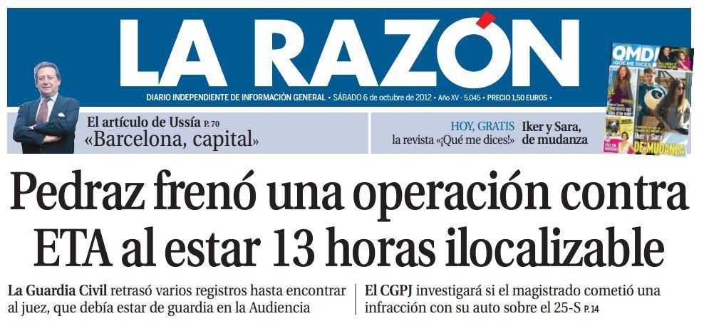 El titular del Juzgado número 1 de la Audiencia Nacional, Santiago Pedraz, se ha atrevido a decir que no ve delito en la convocatoria del 25S y la maquinaria de guerra mediática y política de la derecha se ha puesto en marcha. Edurne Uriarte, la periodista enchufada en TVE por ser la mujer del Ministro de Educación, Cultura y Deporte y fiel defensora del PP, le tilda de extremista (de izquierdas 0_0), la Marquesa de Salvatierra y defensora del Pueblo, Soledad Becerril, que no ha ejercido las funciones que corresponde a su puesto con los ciudadanos agredidos por la policía, también critica la decisión haciendo una defensa cerrada de los políticos y sin descartar actuar de oficio. El portavoz del PP en el Congreso, Rafael Hernando, le llamó pijo acrata por hablar de convenida decadencia de la clase política. El presidente de Baleares, el pepero José Ramón Bauzá, afirmó que  lo dicho por el juez abre las puertas a que personas extremas de grupos radicales puedan tener un punto en que justificar barbaridades. La portavoz y diputada de UPyD, Rosa Díez, y el portavoz adjunto del PP en el Congreso de los Diputados, José Antonio Bermúdez de Castro, también le criticaron. El colectivo ultraderechista Manos Limpias ha denunciado al juez por su crítica displicente a la clase política y  por denigrar a la Policía en el auto. Hasta el Fiscal General del Estado, el conservador Eduardo Torres-Dulce nombrado por el PP, analiza si el auto tiene contradicciones. Todos a una como en Fuenteovejuna.