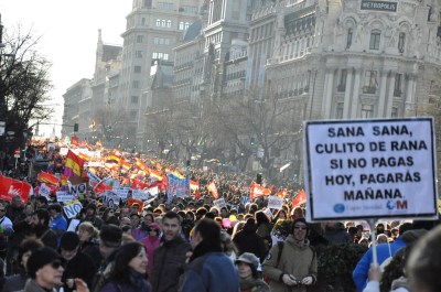 El pueblo ha vuelto a ocupar las calles en un ejercicio de dignidad y de democracia aunque Salvador Victoria, portavoz del gobierno del PP en Madrid y poco habituado a estas muestras de democracia en estado puro, haya considerado que la marea ciudadana es antisistema y antidemocrática. Si nos ponemos puristas la marea es antisistema, teniendo en cuenta el sistema corrupto y podrido que sostiene el partido al que representa el señorito Victoria, y si nos atenemos al concepto de los populares de la democracia, que se puede resumir en los sobres, la corrupción, las mentiras y el negocio, pues también sería antidemocrática. Realmente esta marea ciudadana ha salido a la calle por gente como él. A nadie le puede extrañar estos exabruptos. Son los habituales aunque no por ello se debe dejar de exigir consecuencias por estas palabras. A los cargos públicos se les debe pedir respeto por las personas en su libre ejercicio de la libertad de expresión y si no son capaces no pueden permanecer en un puesto de responsabilidad política. Tampoco extraña el comportamiento de la policía, que vuelve a convertir el centro de Madrid en una batalla campal. A parte del rídiculo del TEDAX y los cócteles molotov. No dejaré de defender la desaparición de una unidad policial violenta y fascista como es la UIP y el procesamiento de los responsables, de aquellos que permiten y ordenan su despliegue violento, de aquellos que legitiman políticamente su actuación vandálica. No son policías sino mamporreros, matones, ultras gracias a un sistema que les permite actuar como delincuentes bajo el paraguas de la ley. A pesar de todo, gran parte del pueblo vuelve a dar una lección de dignidad, de forma pacífica, harto de la corrupción y de los engaños, vía recortes, del gobierno del Estado Español y de la Europa neoliberal. Existe una esperanza y esta reside en cada una de las personas que han participado en las manifestaciones del 23F celebradas a lo largo del estado. Sí se puede, si estamos todas juntas. No hay nada que les pueda dar más miedo.