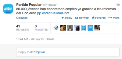 Montoro dijo hace unos días que España está en movimiento y será capaz otra vez muy pronto de asombrar al mundo y hace más días aún que España es el gran éxito económico del mundo. Como este señor no tiene medida también afirmó que España es un país capaz de dar lecciones a Europa y al mundo. Cospedal dijo que tener en una empresa al que fue vicepresidente económico y autor del milagro español es un magnífico fichaje en relación a la contratación de Rodrigo Rato por el Banco Santander de Botín. Incluso desde la cuenta de twitter del Partido Popular nos hablaron de las maravillas que están ocurriendo durante el gobierno popular: