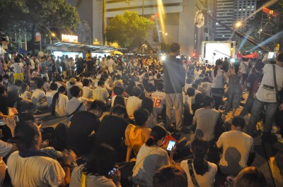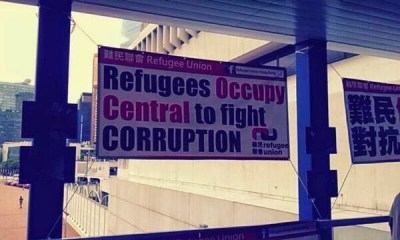 A los activistas de Occupy Central me los encontré cerca del muelle de Central y estaban recogiendo dinero para ayudar a los refugiados en HK además de criticar la corrupción y el funcionamiento de los servicios sociales. A los refugiados no se les permite trabajar por lo que están abandonados a su suerte.