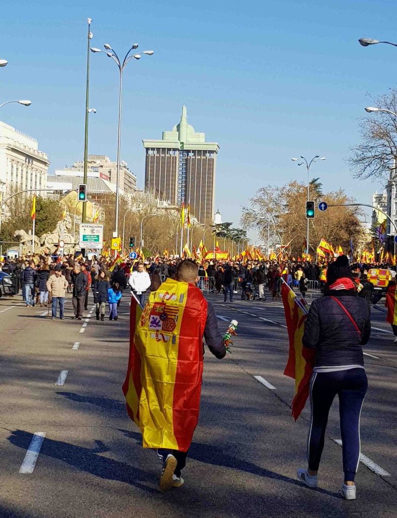 La estrategia de la derecha es golpearte con el palo de la bandera y ante una realidad amenazante y llena de incertidumbre indicarte que te recubras con un trozo de tela, revestida de poderes sobrenaturales. Ya lo dijo el extremista Ortega Smith: una bandera en una institución es la mejor garantía de los más necesitados. Es evidente que esta estrategia no va dirigida a la concordia sino al enfrentamiento. La derecha española, por tradición, se siente más cómoda en escenarios de confrontación e imposición, porque no hay mucho que decir en esas circunstancias. La palabra solo les sirve para ordenar. El diálogo les coloca ante el riesgo de estar equivocados, y esto no lo van a aceptar jamás. La confrontación ayuda a construir un escenario en el que se pueda imponer porque siempre habrá personas que no participen de las ideas defendidas. Aquí entra en juego el descrédito o la satanización del oponente. Este fenómeno lo hemos vivido cada vez que el Partido Popular ha perdido elecciones. El clima político ha empeorado. Ha aumentado la polarización social y se ha impuesto el grito, la mentira y la manipulación frente al diálogo. Las tensiones territoriales se han agudizado y los poderes del estado han incrementado la represión. Trasladan tensión a la sociedad mientras siguen haciendo negocios entre bastidores. Una buena y conocida estratagema. Saben que siempre habrá algunas que griten ¡Viva España! y agiten con rabia banderas españolas. Hay que tocar la tecla adecuada. Décadas de condicionamiento no pueden caer en balde.